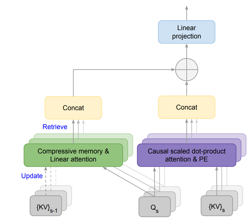 🔥🚀 Efficient Infinite Context Transformers with Infini-attention: Infini-attention, a new architecture by Google, revolutionizes long-context data management for enterprise LLM solutions. It incorporates compressive memory and enhances long-context language tasks creating a way for a infinite context window size processing. Its plug-and-play adaptability and real-time inference capabilities make it a game-changer. My post about it on linkedIn